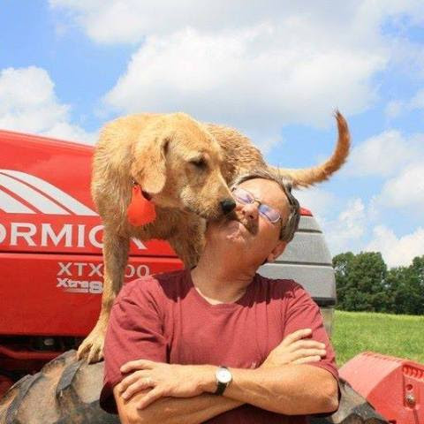 He and my bloodhound, Abigail Adams, chase my car as I drive a few miles around the farm. They get lots of good exercise and take time to sniff at animal scents, too.