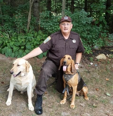 Mosby is now four years old and he is a big dog. He weighs over a hundred pounds. When he’s excited about following a track, he’s pretty hard to handle. He really makes me work as I try to keep up with him.