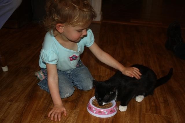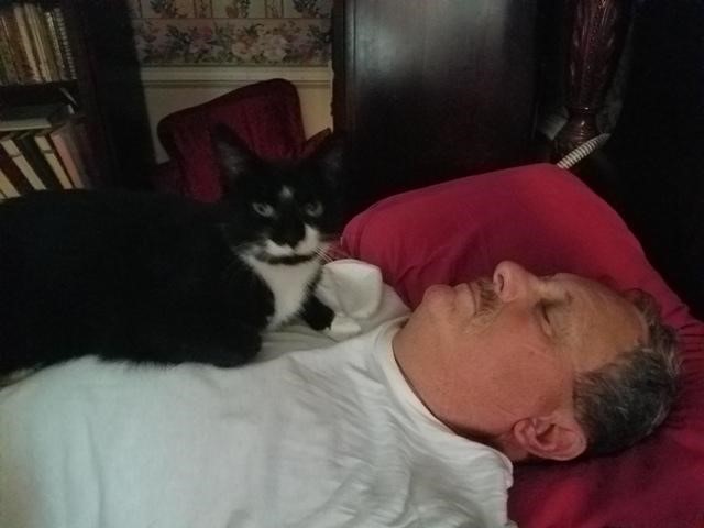 At night just before bedtime, Betsy likes to come in for a small bedtime snack and that’s when she loves to jump on the bed, sit on my chest, and get petted for a few minutes before heading outside for the night.