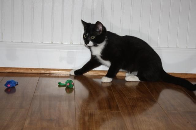 On family nights, when all the grand kids are at our house, she comes in to play with her toy mice and even loves playing marbles with the kids. They roll marbles to her and she bats them with her paw and chases them.
